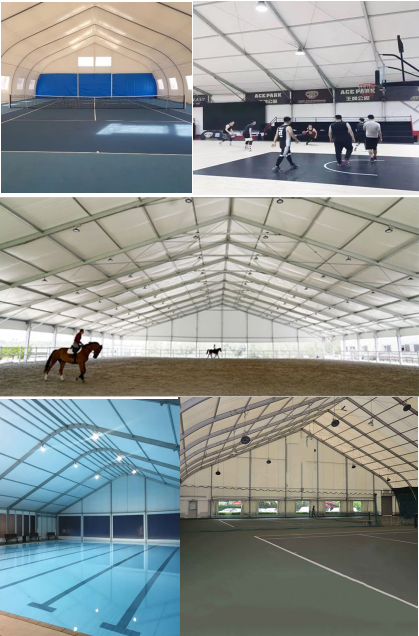 الخيمة الرياضية هي هيكل رائع ومتعدد الاستخدامات. إنه مصنوع بإطار قوي، غالبًا ما يكون مصنوعًا من الألومنيوم أو الفولاذ عالي الجودة، مما يضمن الاستقرار والمتانة. تم تصميم نسيج الخيمة ليكون مقاومًا للعوامل الجوية، ويحمي الرياضيين والمتفرجين من الشمس والمطر والرياح. يمكن تهيئة مساحاتها الداخلية الفسيحة لاستيعاب الأنشطة الرياضية المختلفة مثل كرة السلة أو التنس أو التدريب على اللياقة البدنية. بفضل أنظمة التهوية والإضاءة الممتازة، فإنه يخلق بيئة مريحة ومضاءة جيدًا. سواء كانت للمسابقات الاحترافية، أو الأحداث الرياضية، أو الأنشطة الرياضية المجتمعية، توفر الخيمة الرياضية حلاً مريحًا ومرنًا، مما يجلب الإثارة الرياضية إلى أي مكان.